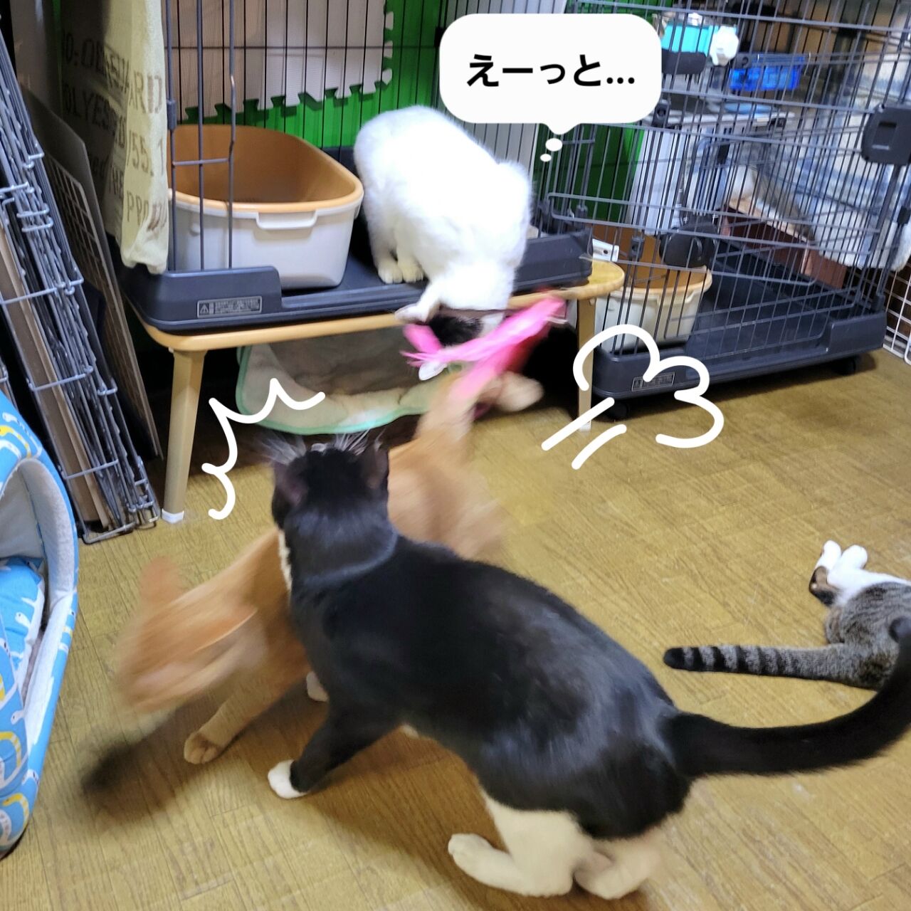 猫仲間とも良く遊び、猫先輩に怒られますが、