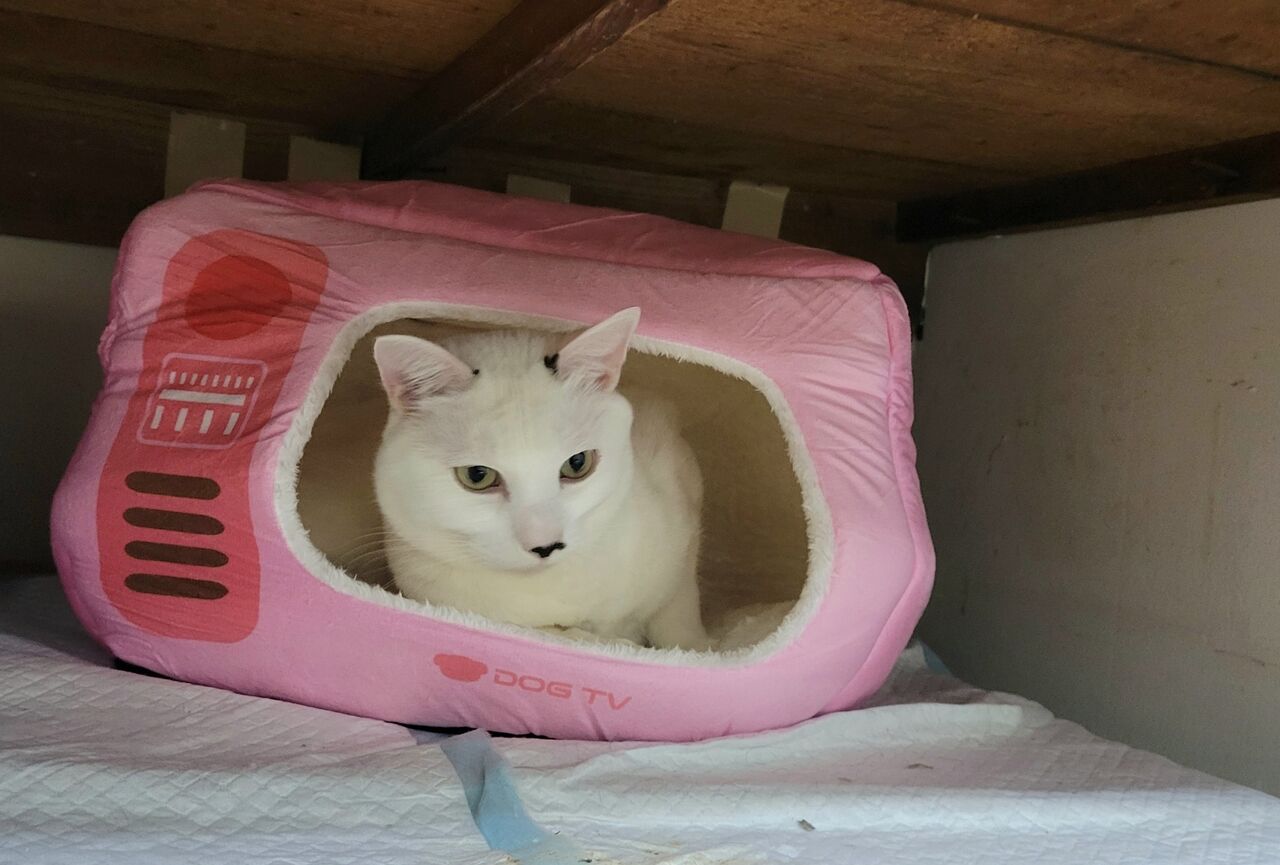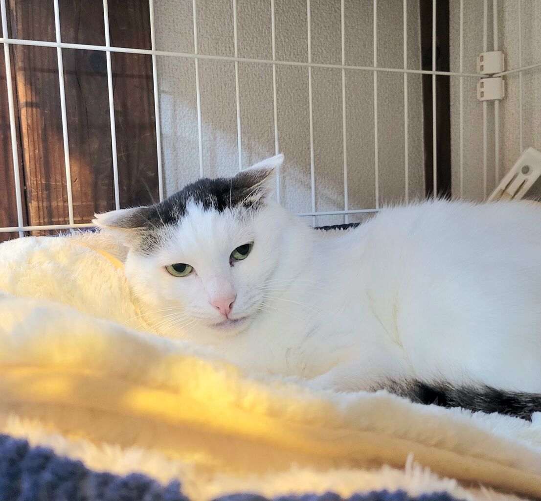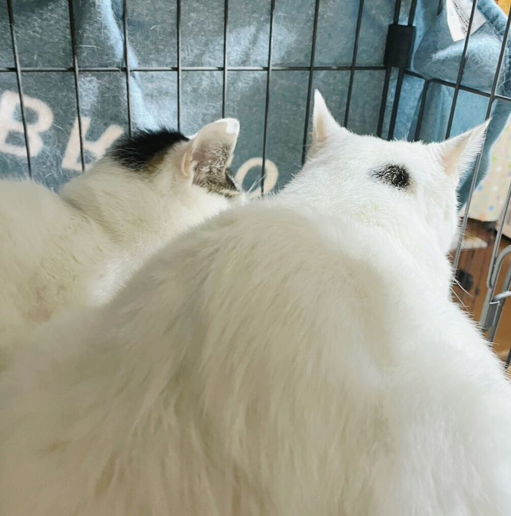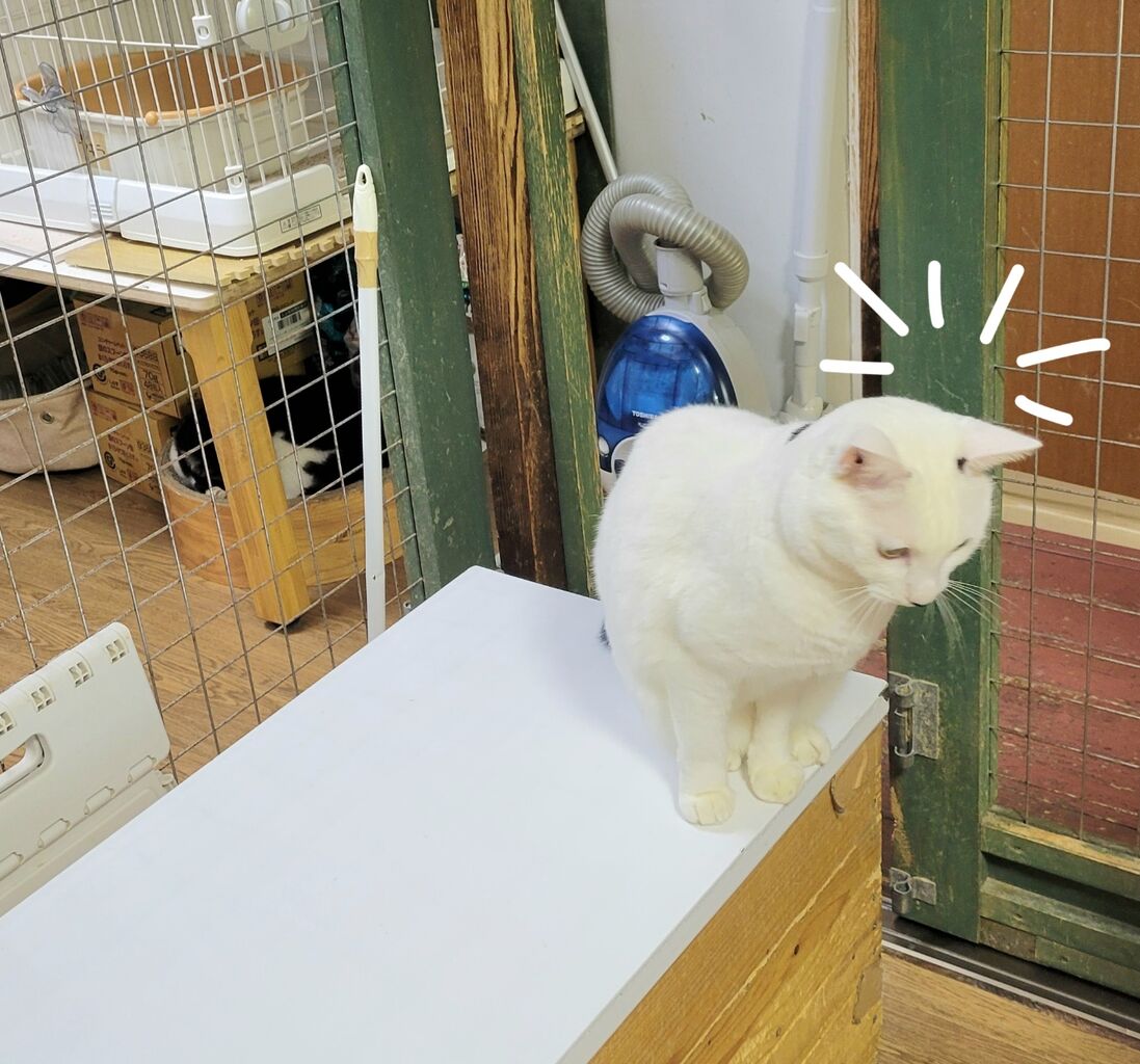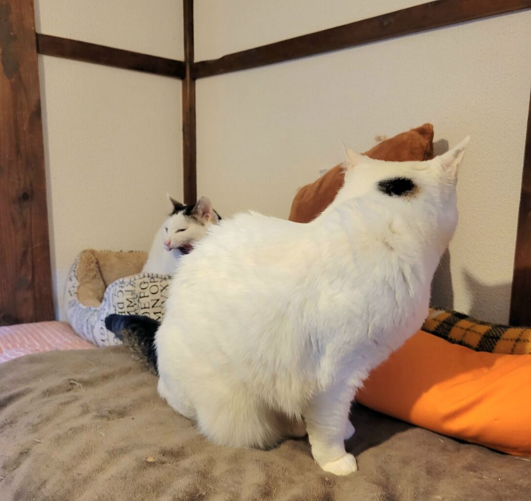 👇1階の慎重派、蓮くん⛄も白が多い白キジ