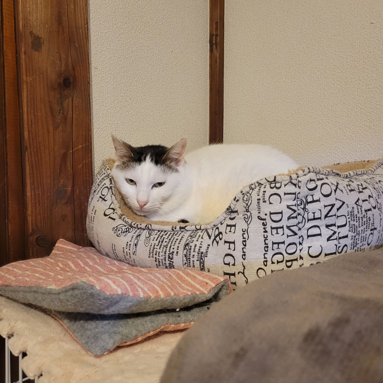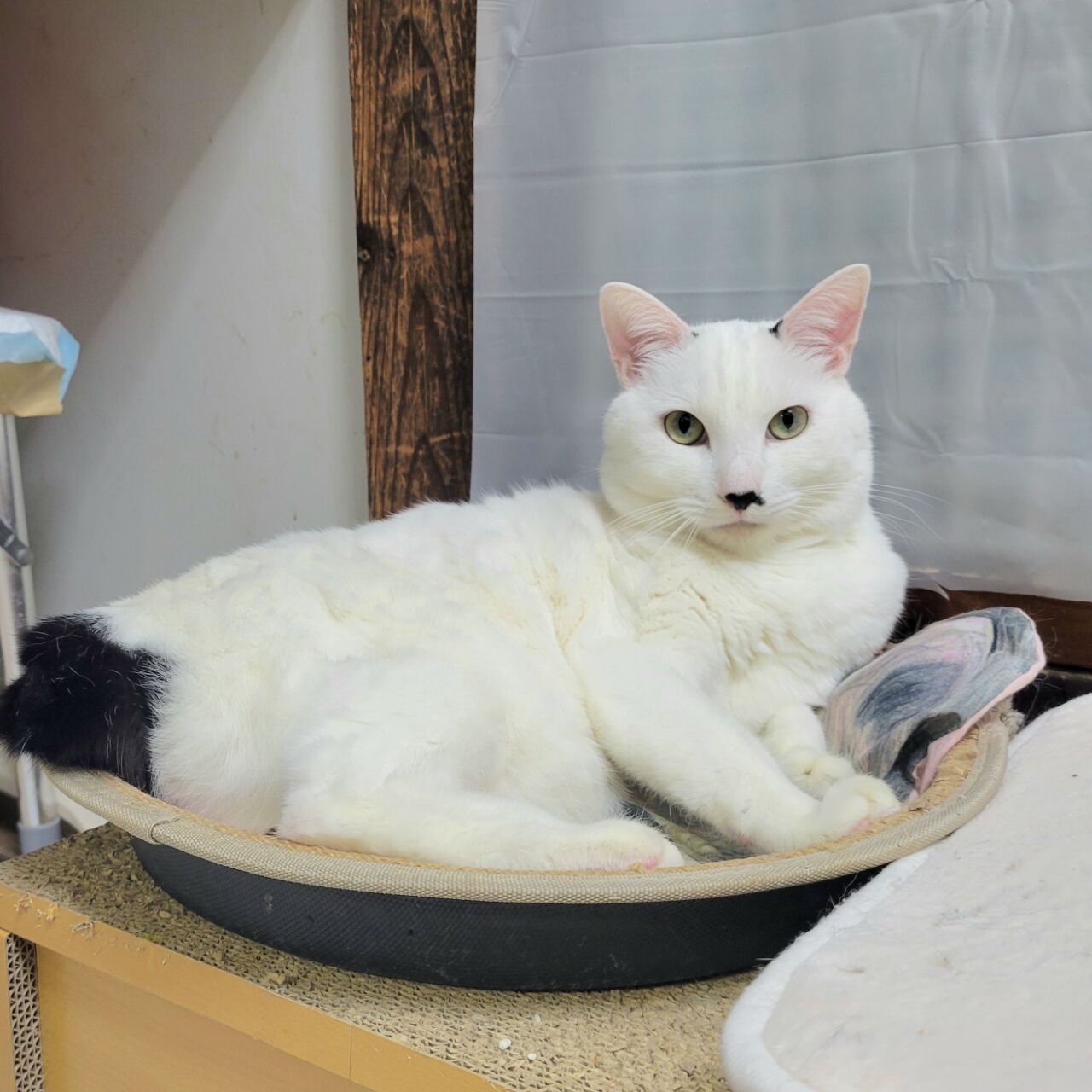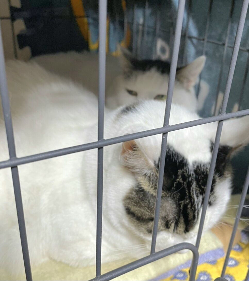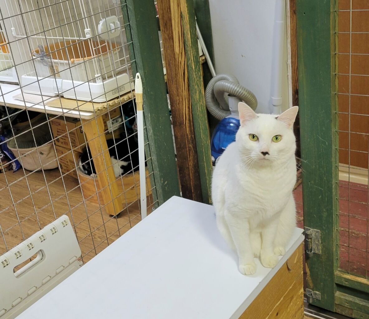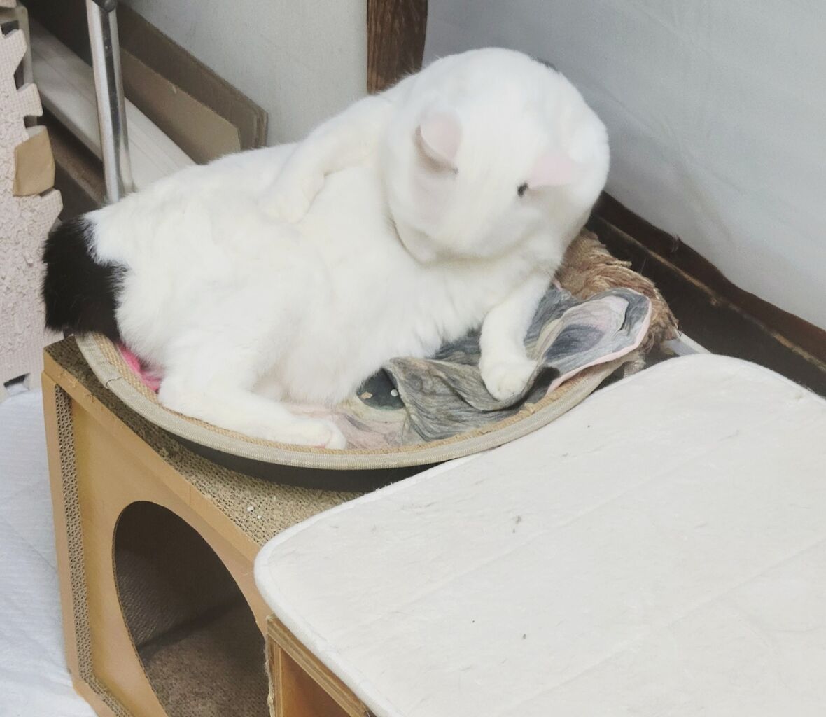 👇1階の慎重派、蓮くん⛄も白が多い白キジ