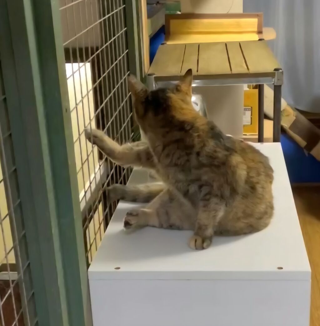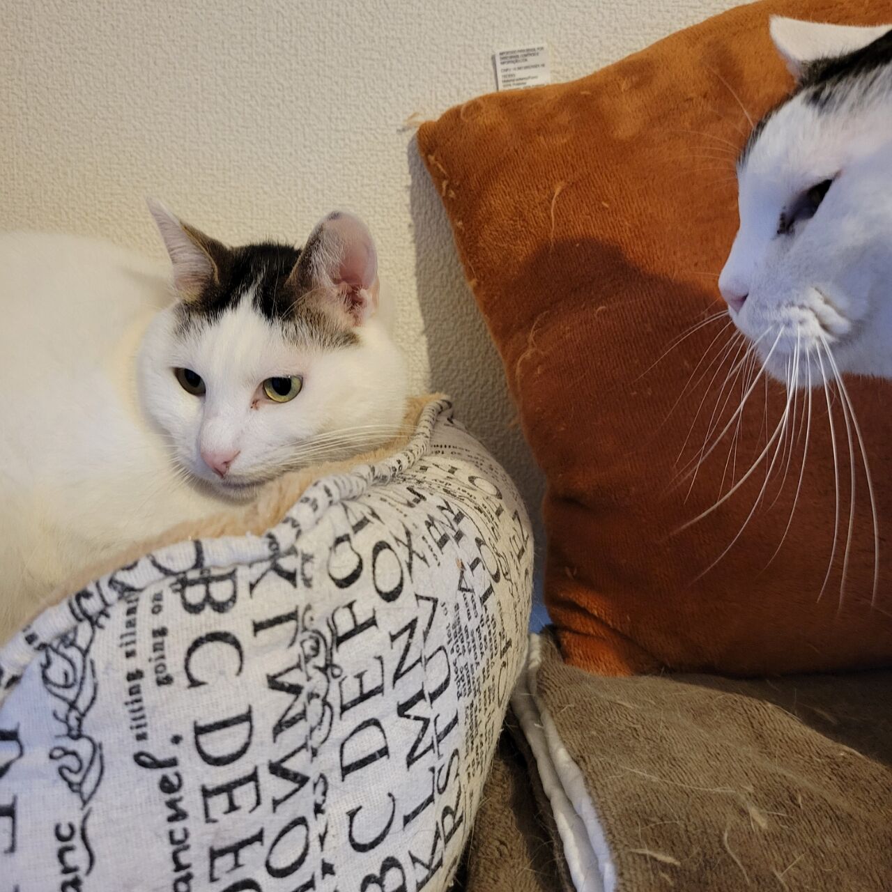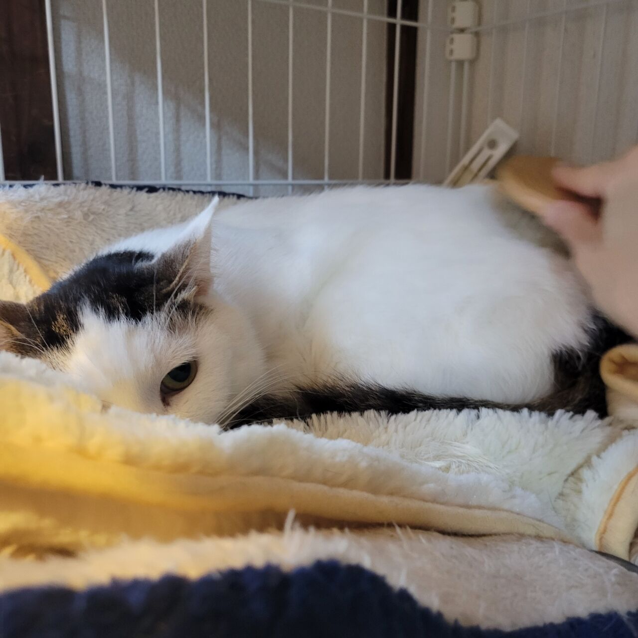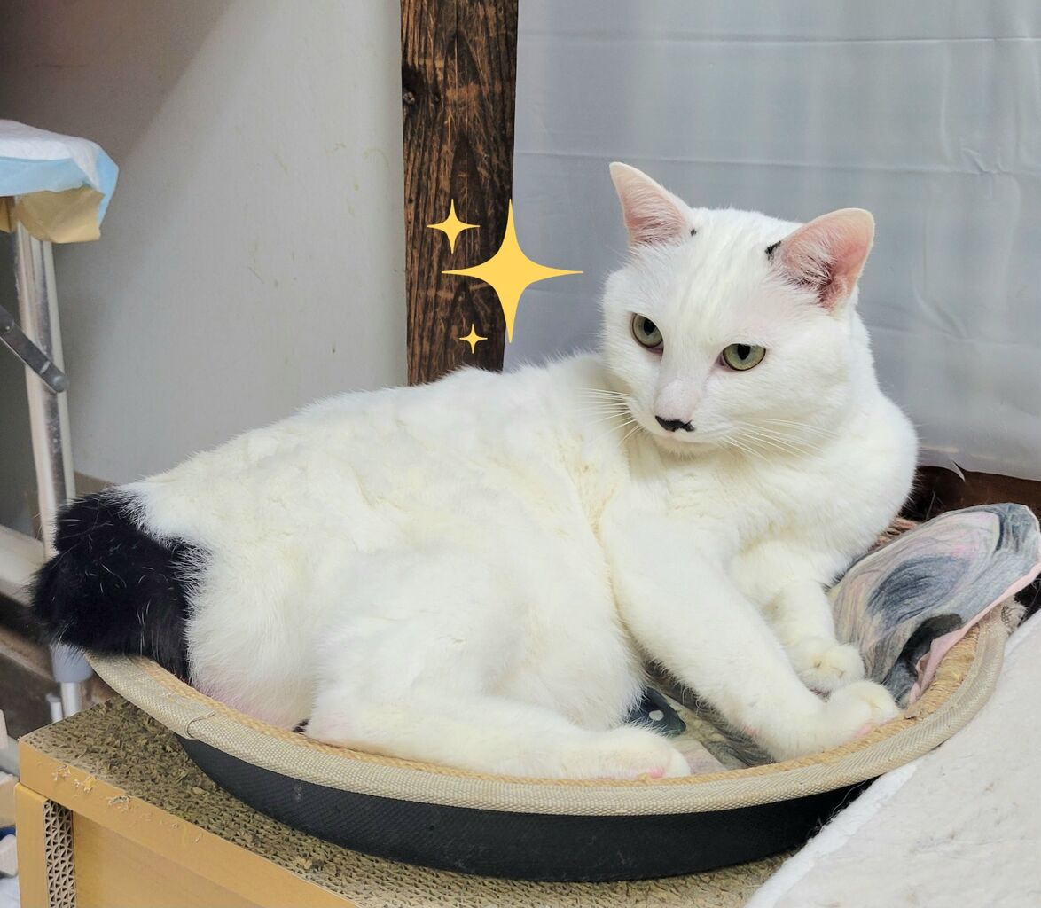 👇1階の慎重派、蓮くん⛄も白が多い白キジ