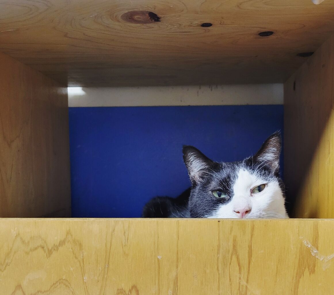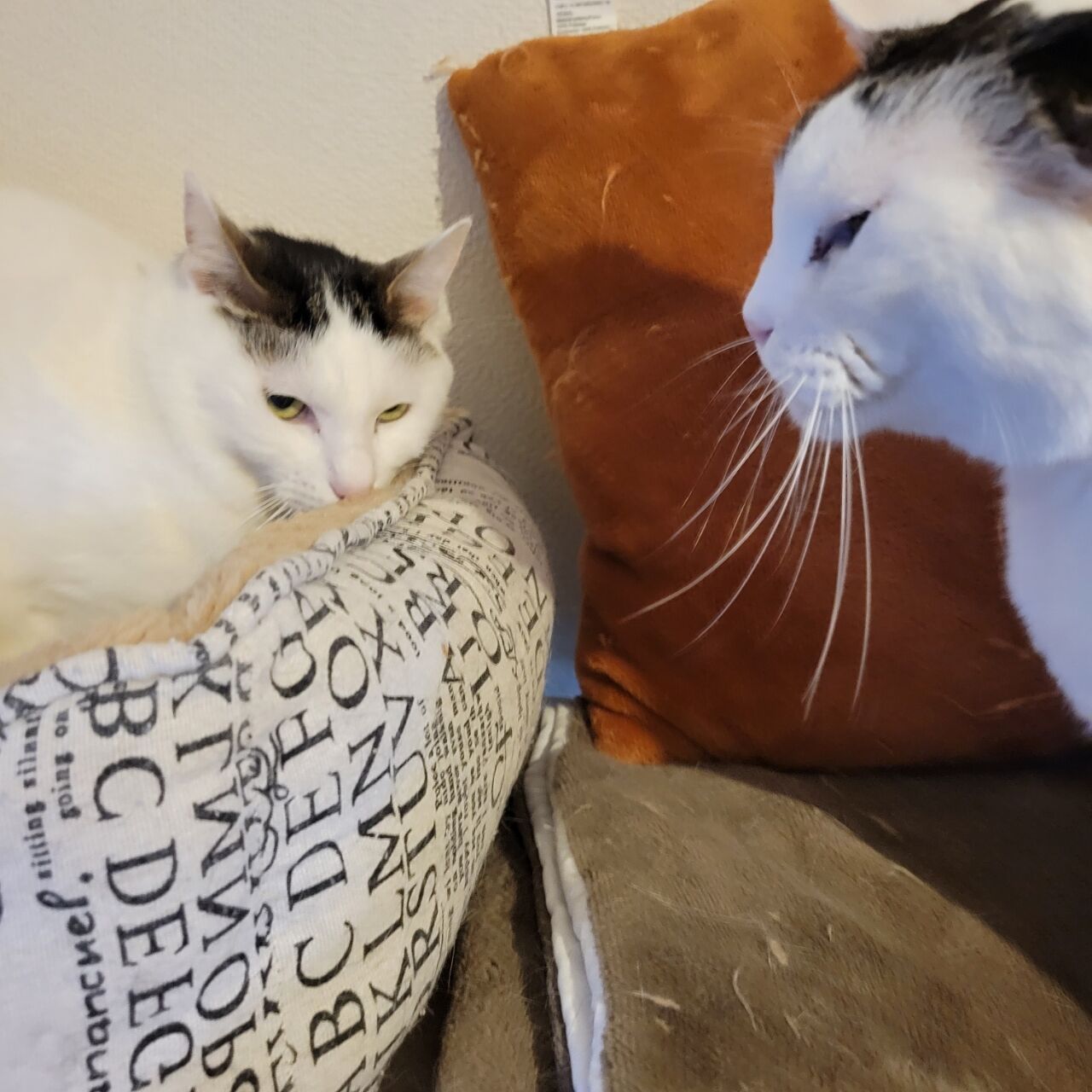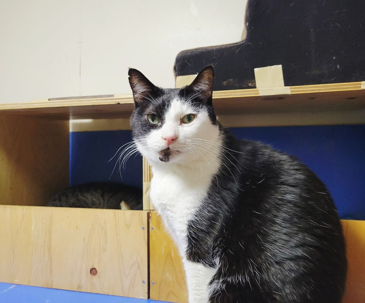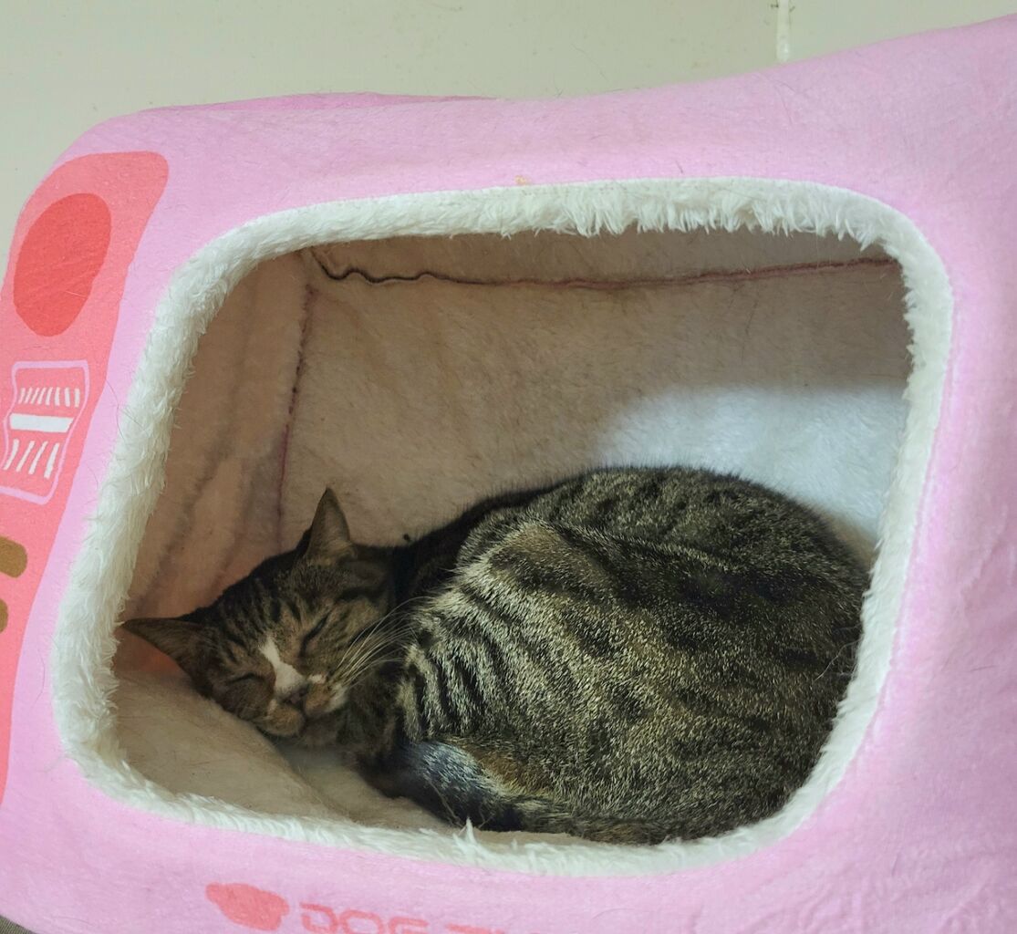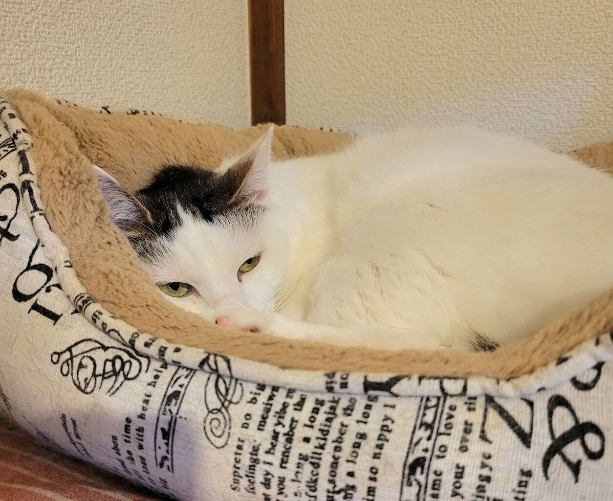 👇1階の慎重派、蓮くん⛄も白が多い白キジ