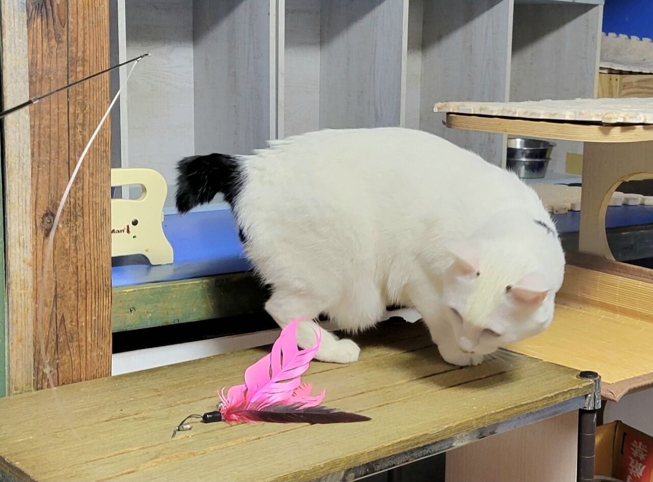 えーっと羽じゃらしで遊ぶんだにゃ🐺🎵